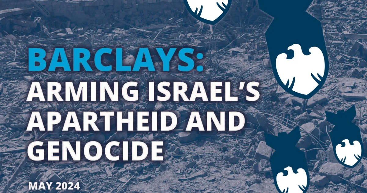Barclays Bank owns shares worth over £2 billion – and provides a further £6.1 billion in loans and underwriting – to nine companies which provide weapons and military technology to Israel, according to a joint 2024 report by Palestine Solidarity Campaign, War on Want and Campaign Against Arms Trade.